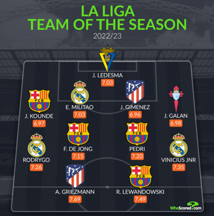 აღსანიშნავია, რომ WhoScored-მა ესპანეთის ჩემპიონატის საუკეთესო XI დაასახელა, სადაც "ბარსას" 4 მოთამაშე მოხვდა.