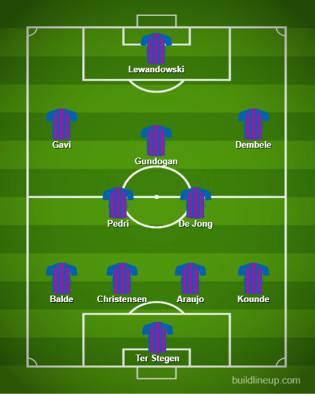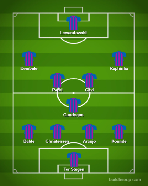 მსგავსი განლაგება ჩავის მისცემს საშუალებას, პედრი&გავის დუეტი არ დაშალოს, წინ კი უსმან დემბელეს, რობერტ ლევანდოვსკისა და რაფინიას ტრიოთი შეუტიოს.