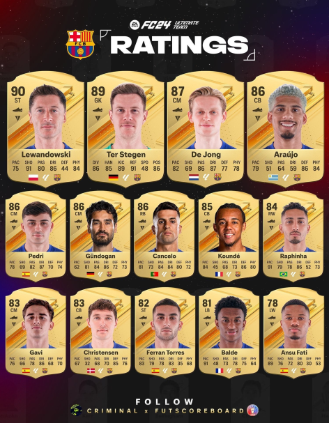 "ბარსელონას" ფეხბურთელების რეიტინგები EA FC 24-ში