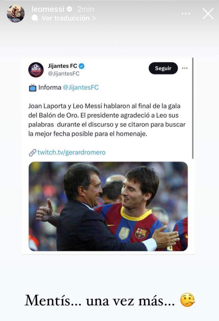 ცნობილმა ჟურნალისტმა, ჟერარ რომერომ დღეს გვამცნო, რომ ლიონელ მესიმ და ჟოან ლაპორტამ ოქროს ბურთის დაჯილდოებით ისარგებლეს და "კამპ ნოუზე" გამოსამშვიდობებელი მატჩის ჩატარების შესახებ ისაუბრეს.