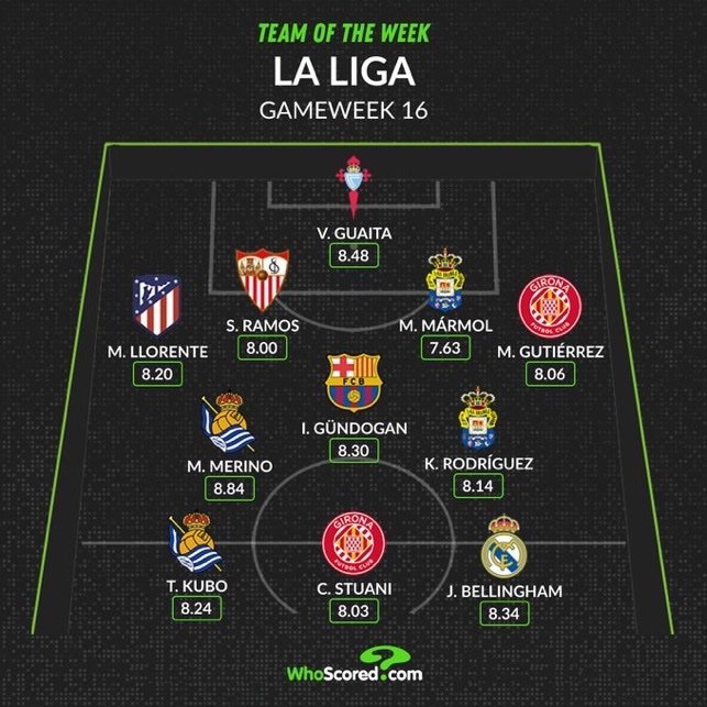 Whoscored-მა ლა ლიგის მე-16 ტურის სიმბოლური გუნდი შეადგინა, სადაც “ბლაუგრანას” ნახევარმცველი, ილქაი გიუნდოგანიც მოხვდა.