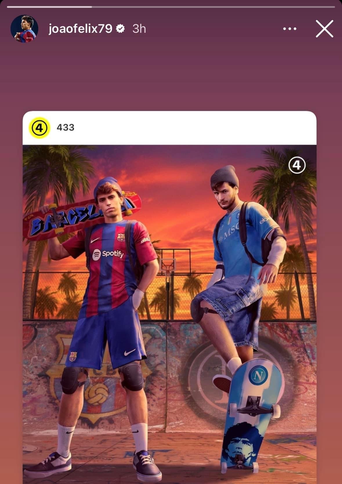 შეხვედრის წინ ჟოაო ფელიქსმა 433-ის ფოტო განათავსა სთორიში, სადაც ის ხვიჩა კვარაცხელიასთან ერთად არის წარმოდგენილი.