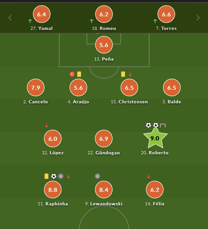 “ბარსელონა” VS “ალმერია” - ფეხბურთელთა შეფასებები