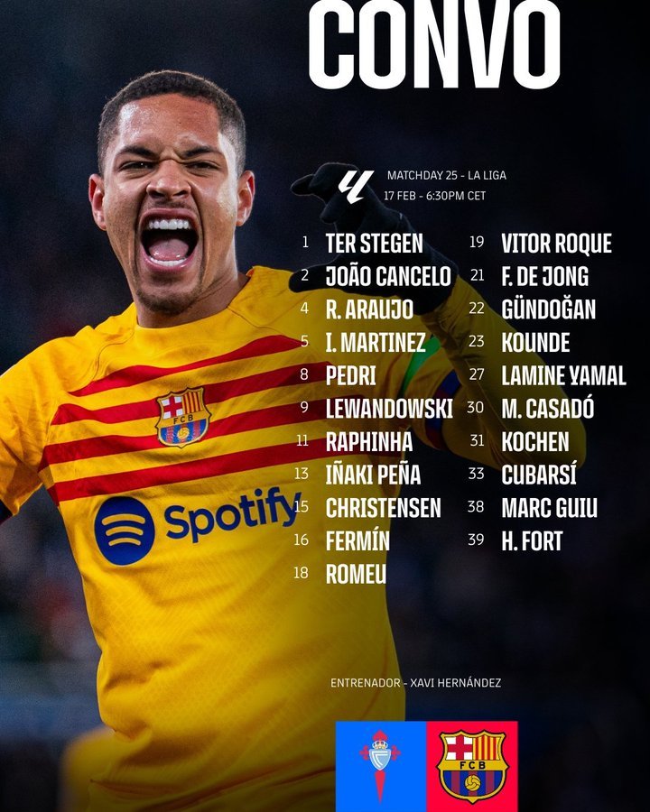როგორც მოგეხსენებათ, ლა ლიგის 25-ე ტურის შეხვედრაში “ბარსელონა” “სელტა ვიგოს” ესტუმრება. იხილეთ განაცხადი: