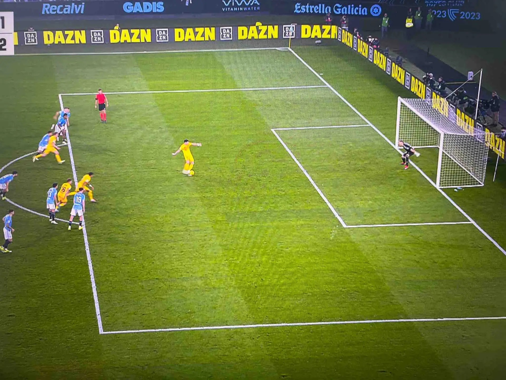 პოლონელმა თავდამსხმელმა თერთმეტმეტრიანი ხელმეორედ დაარტყა, რადგან მისი პირველი მცდელობისას, რომელიც ვიგოელთა მეკარემ გაანეიტრალა, მეტოქე გოლკიპერს ფეხი კარის ხაზზე არ ედგა. სწორედ ამიტომ მიეცა 35 წლის ცენტრფორვარდს მეორე შანსი.