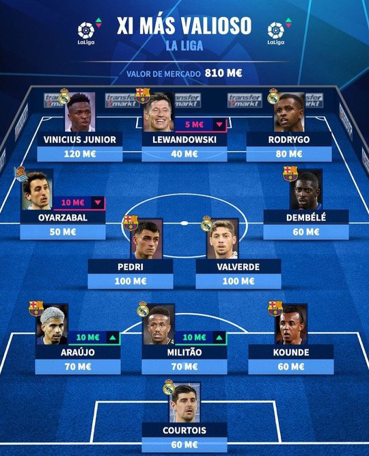გავლენიანმა გამოცემა Transfermarkt-მა ლა ლიგაში მიმდინარე სეზონის ყველაზე ძვირადღირებული თერთმეტეული შეადგინა.